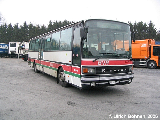 Jetzt wechseln wir zur BVR-Einsatzstelle Willich, die auf dem Gelände der Firma Boeckels (u. a. Setra-Händler und -Werkstatt) im Ortsteil Schiefbahn beheimatet ist. Im November 1994 wurde dieser Setra S 215 UL in Dienst gestellt, der mit der Wagen-Nr. 5280 versehen ist. Das Fahrzeug ist bereits mit den damals neu eingeführten seitlichen Markierungsleuchten ausgestattet.