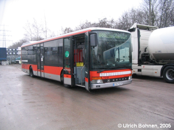 Wenn man genau hinsieht, kann man bei diesem Setra S 315 NF, Wagen 7018, innen über dem rechten Vorderrad den schon erwähnten SB-Fahrausweis-Automaten in orange erkennen.