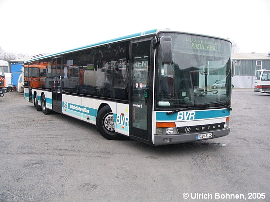 Frisch gewaschen präsentiert sich dieser Setra S 319 NF mit SB-Lackierung, Wagen 8105, in der immer noch außergewöhnlich wirkenden Länge von 15 Metern dem Fotografen.