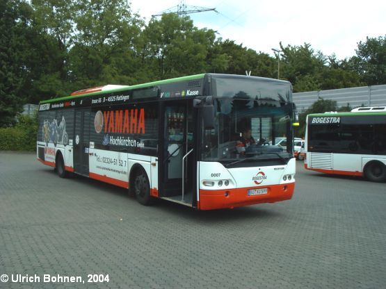 Für einen Motorradhändler wirbt dieser Neoplan Centroliner, der im Jahre 2000 in Dienst gestellt wurde. Kurz nach der Aufnahme setzte sich das Fahrzeug in Bewegung, um in den Bochumer Nahverkehr "einzugreifen".