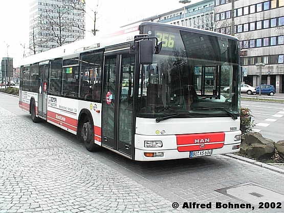 Bereits 1998 beschaffte die Bogestra MAN-Busse der A21-Baureihe, die schon mit der aktuellen Frontgestaltung und der einheitlichen Fensterlinie (ohne direkt sichtbare "Stufe") versehen sind. Das Bild von Wagen 9805 entstand am Bochumer Hbf. Diese Aufnahme wurde von Alfred Bohnen zur Verfügung gestellt!
