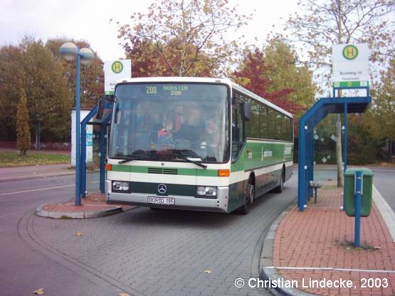 Bruns aus Recken (Kreis Borken) besitzt neben einigen Setra 315 NF und Mercedes-Benz O 405, O 407, O 530 (Ü) auch mindestens einen Mercedes-Benz O 408. Wiederum am Dorstener ZOB entstand am 30.10.2003 dieses Bild eines O 408 von Bruns.
