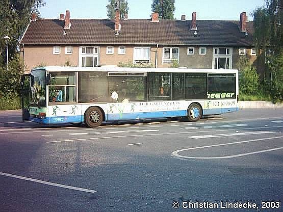Dieser 1997er Setra S 315 NF von Hegger (laut Presseberichten mittlerweile insolvent) hat leider zwei entscheidende optische Mängel aufzuweisen: Zum einen natürlich die fehlende "Radkappe", zum anderen der unvollständige Schriftzug "hegger", da wohl eine Seitenscheibe an dieser Stelle erneuert wurde. Diese Aufnahme wurde von Christian Lindecke zur Verfügung gestellt!