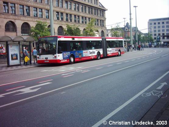Auch die SWK Mobil GmbH beschaffte Mitte der neunziger Jahre des letzten Jahrhunderts diverse Van Hool AG 300. Wagen 5667 aus dem Jahre 1996 ist am 06.06.2003 gerade als Linie 057 am Krefelder Hauptbahnhof angekommen. Diese Aufnahme wurde von Christian Lindecke zur Verfügung gestellt!
