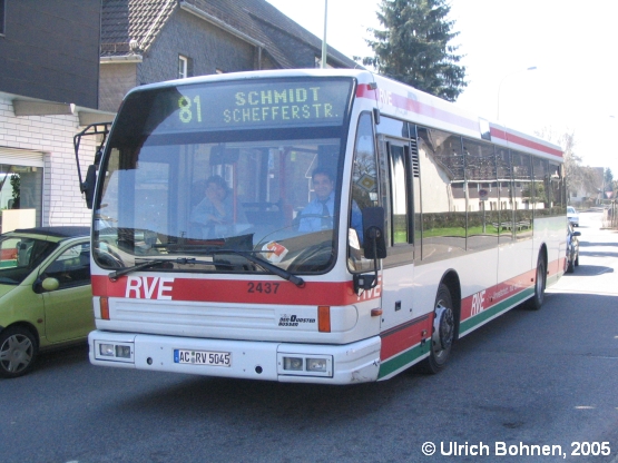 Auf diesem Foto vom 02.04.2005 ist ein Den Oudsten B 96 der Regionalverkehr Euregio Maas-Rhein GmbH (RVE), Wagen 5045, in Schmidt in der Nordeifel zu sehen. Der Bus wird bald seine Endstation erreicht haben, um dann wieder zurück zum Simmerather Bushof zu fahren.
