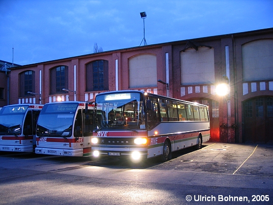 Zum Abschluss dieser Fotoserie ein Dämmerungsfoto. In einer weiteren Pause (die Fahrtzielanzeige zeigt es bei genauerem Hinsehen) wurde der RVE-Hof in Aachen angesteuert und die volle Beleuchtung eingeschaltet. Roland Schulteis, Sascha Wassen und meine Wenigkeit nutzten die Gelegenheit, 5101 in Szene zu setzen.