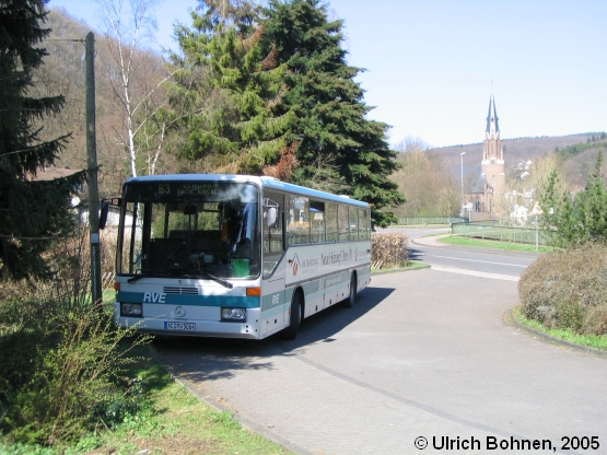 Hier derselbe Bus mit der katholischen Kirche von Gemünd im Hintergrund, die gleichzeitig auch Endstation der Linie 63 ist (siehe Fahrtzielanzeige von RVE-KOM 5004).