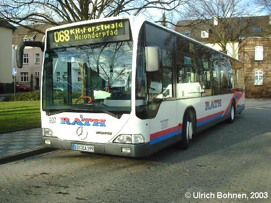 Ein weiterer Rath-Bus wurde ebenfalls am 04.01.2003 am Bahnhof der Stadt Kempen angetroffen: Wagen 937 konnte kurz vor Fahrtantritt als SWK-Linie 068 nach Krefeld-Forstwald aufgenommen werden. Bis ca. September 2002 fuhr auf dieser Linie ausschließlich der direkte Rath-Nachbar, Cremer-Reisen, mit einem weiß-blauen 1996er MAN NL 222 (Foto ebenfalls bei NRW-Bus.de vorhanden). Jedoch scheint Cremer seine Tätigkeit zum Jahresende 2002 eingestellt zu haben.
