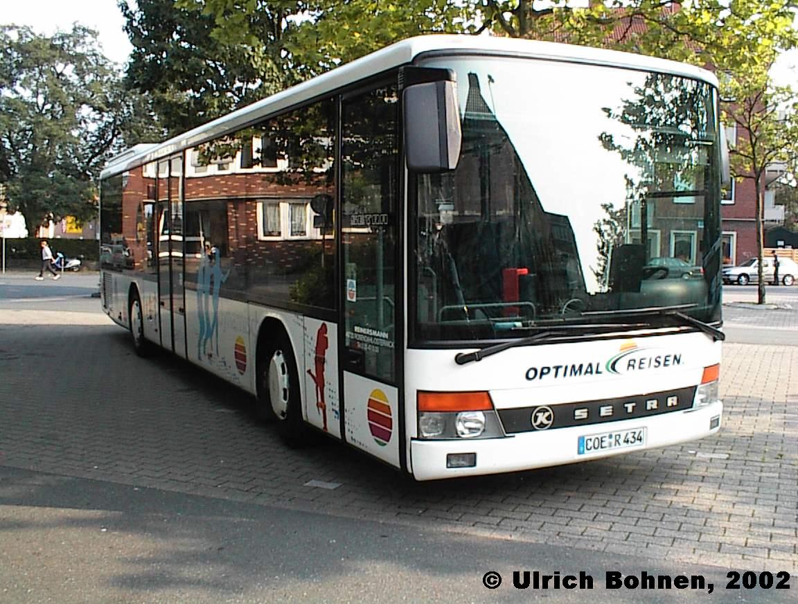 Das Unternehmen Reinersmann aus Rosendahl-Osterwick ist ein Subunternehmer der Regionalverkehr Münsterland GmbH. Zum Einsatz kommt u. a. dieser Setra S 315 NF mit einflügeliger Vordertür. Auffallend bei den in Münster verkehrenden Linienbussen ist, dass eigentlich alle Fahrzeuge mit "Radkappen" ausgestattet sind.