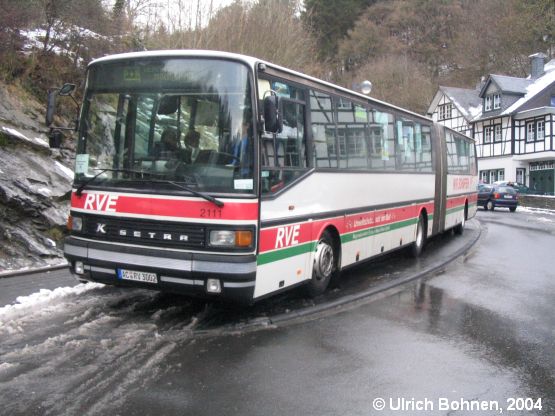 Hier noch einmal einer der beiden Setra-Pendelbusse der RVE vom Typ SG 221 UL, die an allen vier Adventswochenenden zwischen dem Gewerbegebiet Imgenbroich (HIMO) und Monschau verkehrten. Wagen 3002 war bis 2003 bei der RVE-Muttergesellschaft BVR unterwegs.
