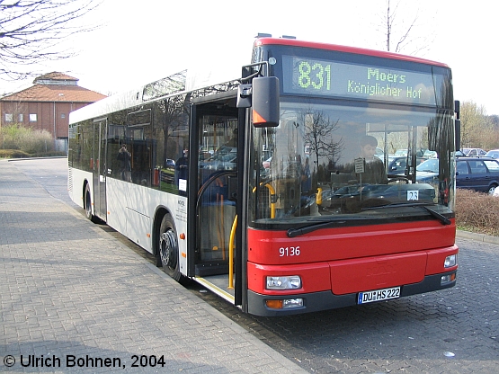Der normale Beobachter (auch ich, bevor ich mir den Wagen genauer ansah) wird sagen "Das ist doch ein Rheinbahn-Wagen" - Pustekuchen! Dieser MAN A 21 gehört dem Rheinbahn-Subunternehmer Schmitz aus Duisburg und konnte am 27.03.2004 am Meerbuscher Haus Meer abgelichtet werden.