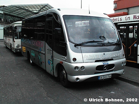 Bei diesem Fahrzeug handelt es sich um einen Sitcar Sloughi aus italienischer Produktion. Das Fahrwerk und der Motor stammen von Mercedes-Benz. Besitzer dieses Busses, der am Kölner Hbf. aufgenommen werden konnte, ist "Andy's Fun Touren" aus Finnentrop im Sauerland.