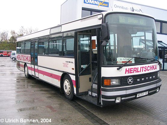 Etwas auf Abwegen - wenn man die Fahrtzielanzeige beachtet - war zum Aufnahmezeitpunkt am Nachmittag des 20.11.2004 dieser Kässbohrer-Setra S 215 SL von Herlitschka aus Kaarst. Die Aufnahme entstand auf dem Gelände des (Omnibus-)Händlers Boeckels in Willich-Schiefbahn (Kreis Viersen). Dort fanden am Wochenende 20.11./21.11.2004 wieder die alljährlichen Gebrauchtbustage statt, auf denen so manches (Bus-)Schätzchen angeboten und sicherlich auch verkauft wurde.