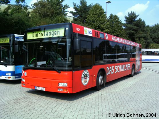 Auf dem Betriebshof abgestellt war u. a. dieser MAN A 21 (NL 263) der WSW. Wagen 0203 trägt die im Bergischen Land recht weit verbreitete Vollwerbung für das Schwelmer Bier.