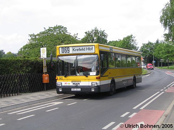 Am Mittag des 21.05.2005 entstanden diese beiden Aufnahmen eines MAN SL 202 der SWK Mobil GmbH aus Krefeld. Wagen 5412, der im Jahre 1991 erstmals zugelassen wurde, wird sicherlich dieses Jahr noch ausgemustert werden, so dass der SWK-Fuhrpark dann höchst wahrscheinlich komplett niederflurig sein wird.