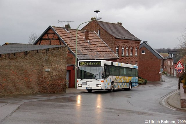 Südlich von Mönchengladbach liegt die ländlich geprägte Gemeinde Titz. Im Ortsteil Opherten konnte am regnerischen 23.01.2009 dieser Mercedes-Benz O 405 N der 1. Generation von Tirtey aus Titz auf der Bergstraße fotografiert werden.