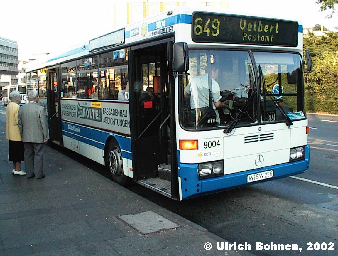 Trotz seines Alters trägt dieser Mercedes-Benz O 405 von 1990 die aktuelle WSW-Lackierung im "Bergischen-Bus-Design". Bis zu seiner Umlackierung war das Fahrzeug im einheitlichen VRR-CityExpress-Design (weiße Lackierung mit orange und roten Streifen) in Wuppertal und Umgebung unterwegs. Der Bus wurde umlackiert, da jetzt neuere Busse auf CE-Linien eingesetzt werden.