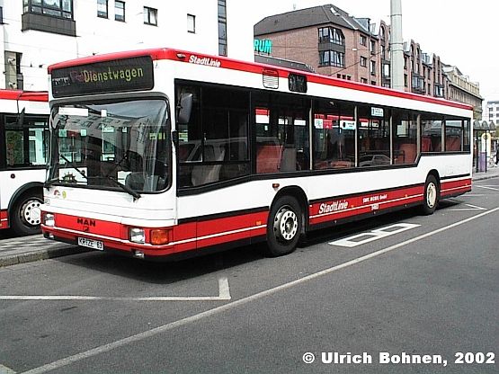 1993 begann auch in Krefeld das Zeitalter der Niederflurbusse; die damalige Städtische Werke Krefeld AG gliederte zwölf MAN NL 202 in den Fuhrpark ein, ein Jahr später folgten noch einmal acht Stück. Die damals hochmodernen Busse erregten in Krefeld und Umgebung viel Aufsehen, da diese erstmals das neue SWK-Farbkleid in weiß-rot ("StadtLinien"-Lackierung) zur Schau trugen. Bis dahin waren die Bus gelb-weiß-anthrazit lackiert (plus natürlich die Busse, die noch in der beige-dunkelroten Lackierung unterwegs waren). Ebenfalls Premiere in Krefeld hatte die optische Haltestellenanzeige, die in den MAN NL 202 sogar zwei Mal (am vorderen Einstieg und an der hinteren Türe) vorhanden ist und daher eine optimale Lesbarkeit gewährleistet ist.