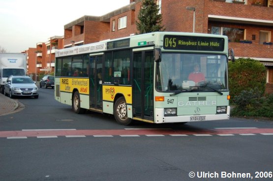 EvoBus-Mercedes O 405 NK, KR-AG 128, Bj. 1998, SWK-Funk-Nr. 947, ex Rheinbahn 9208