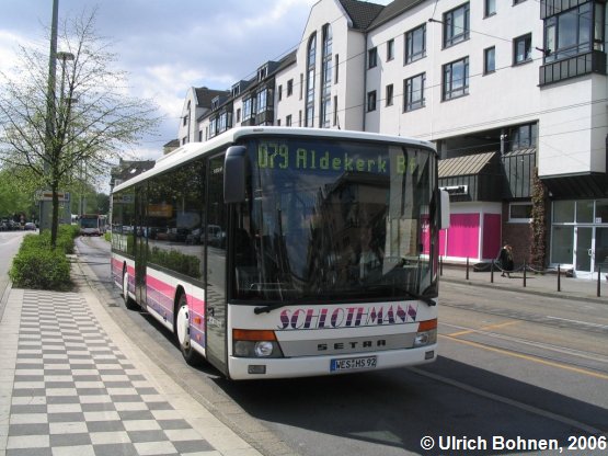 Der Fuhrpark für den Reise- und Linienverkehr setzt sich aus Fahrzeugen von MAN, Mercedes und Setra zusammen. Im Linienbereich ist man für den Auftraggeber RVN (Regionalverkehr Niederrhein) tätig.