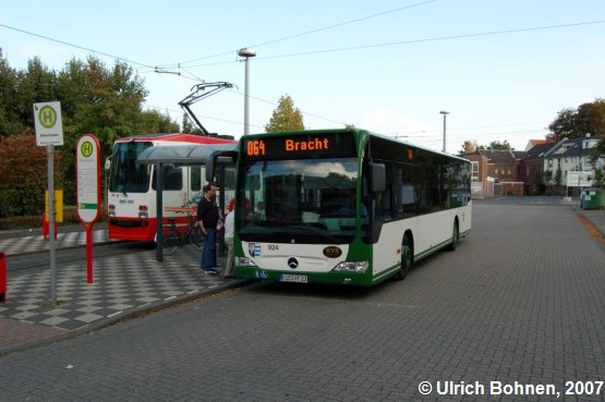 Wie bereits in den August-Nachrichten gemeldet, stellte Kraftverkehr Schwalmtal (KVS) seinen ersten EvoBus-Mercedes Citaro II in Dienst. Am 23.09.2007 gelang es, das Fahrzeug erstmals im Liniendienst abzulichten. Die Aufnahme entstand am Wilhelmplatz in Tönisvorst-St. Tönis, als der Neuling auf der SWK-Linie 064 unterwegs war. Mittlerweile sind drei weitere Neufahrzeuge bei KVS eingetroffen. Näheres dazu in den September-Nachrichten im Krefeld-Special.