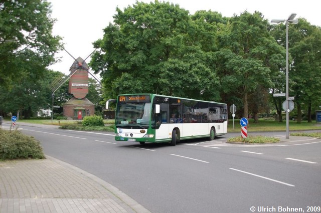 Die Linien der SWK Mobil GmbH aus Krefeld reichen weit in den Kreis Viersen hinein - beinahe bis zur deutsch-niederländischen Grenze. Eine Besonderheit stellt die Linie 074 dar: Die Konzession für die zwischen Viersen-Süchteln und Nettetal-Kaldenkirchen verkehrende Linie besitzt der SWK-Subunternehmer Kraftverkehr Schwalmtal, der die Betriebsführung jedoch an die SWK abgegeben hat. Am 21.05.2009 konnte dieser EvoBus-Mercedes Citaro mit dem Kennzeichen VIE-VF 23 vor der Kulisse der Narrenmühle in Viersen-Dülken fotografiert werden.