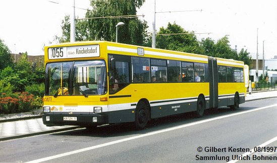 Gilbert Kesten konnte im August 1997 den ehemaligen SWK-Wagen 5611, ein MAN SG 242 H des Baujahres 1987, an der Haltestelle "TEW Tor 3" an der Oberschlesienstraße in Krefeld-Stahldorf aufnehmen. Das Fahrzeug wurde im Jahre 2000 ausgemustert. Weitere Oldiefotos, aber natürlich auch aktuelle Bilder und Infos (u. a. zu den im September 2006 teilweise ausgemusterten MAN NL 202 der SWK), sind dem Krefeld-Special hinzugefügt worden.
