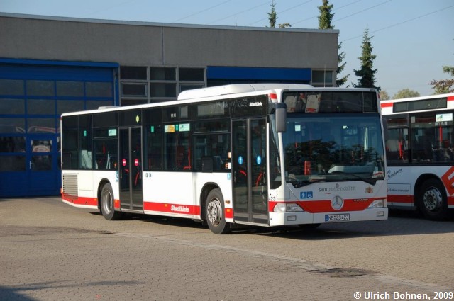 Nach Verlassen des Hauptbahnhofes in Mönchengladbach ging es überland Richtung Neuss (mit einem Fotohalt in Korschenbroich, siehe Bildrubrik "Der Tourbus"). Bei den Stadtwerken Neuss (SWN) war man bestens auf uns vorbereitet: Die Fahrzeuge wurden bereits am Vorabend fotogerecht bereitgestellt!